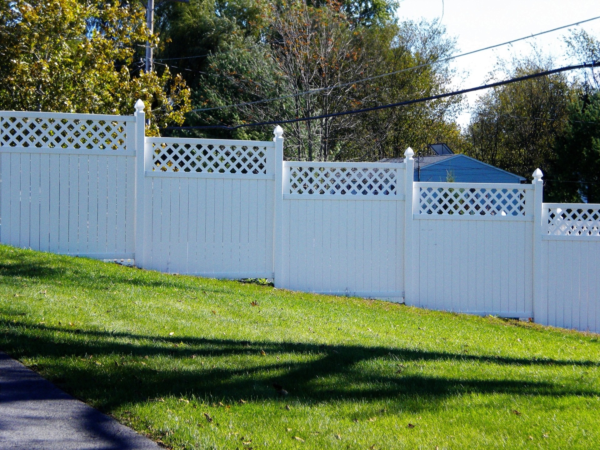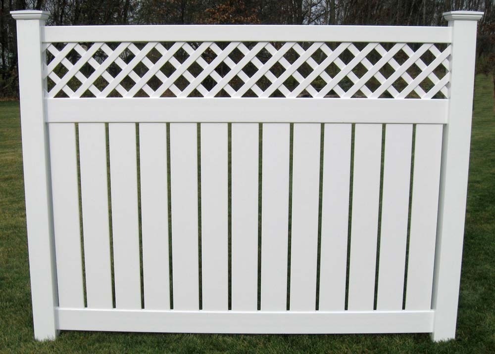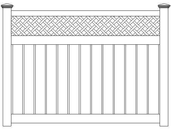 The Fairhaven combines a diagonal lattice top with closely spaced pickets on the lower portion. Made with lattice, 7/8″ x 6″ pickets, 3 1/2″ & 6″ rails, and a metal reinforced bottom rail.