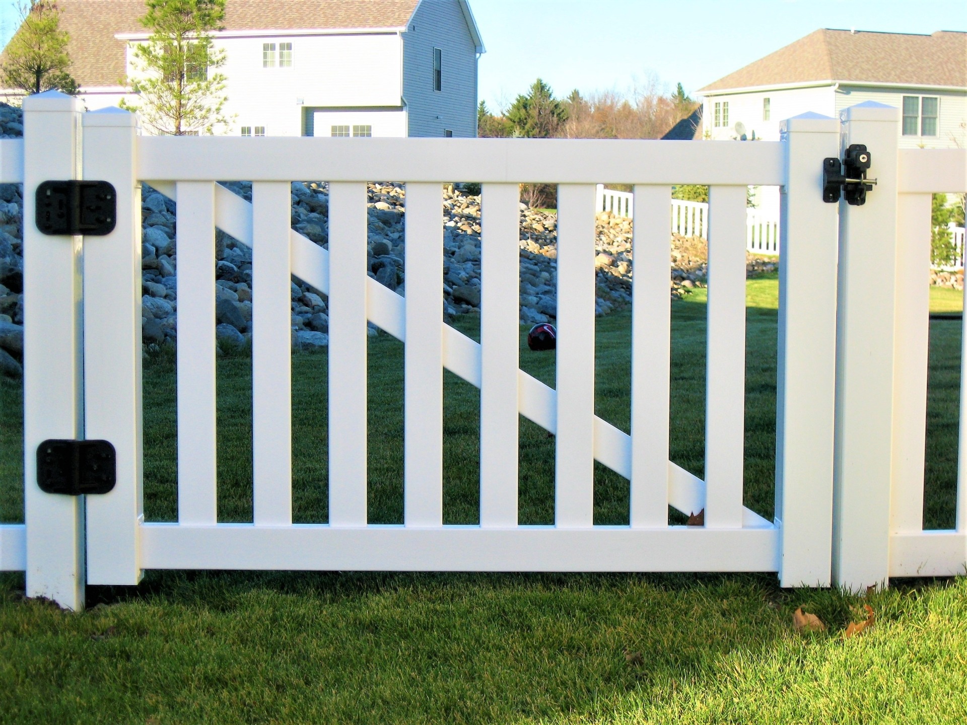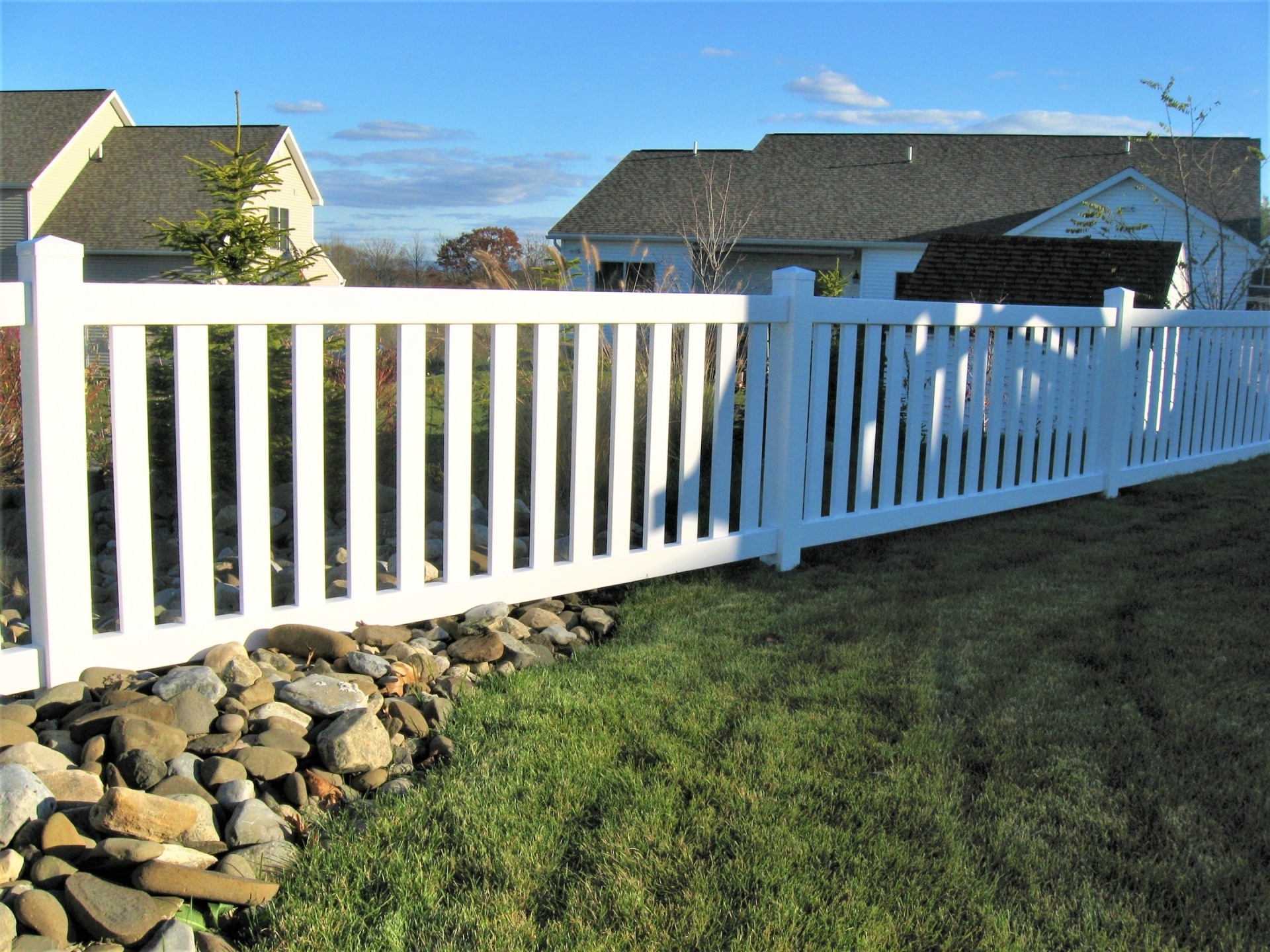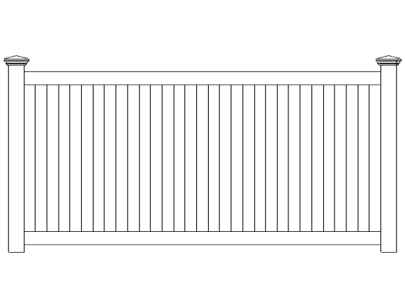 The Bolton vinyl fence is designed using 3 ½” rails and 3” pickets spaced 3” apart. Metal reinforced.
